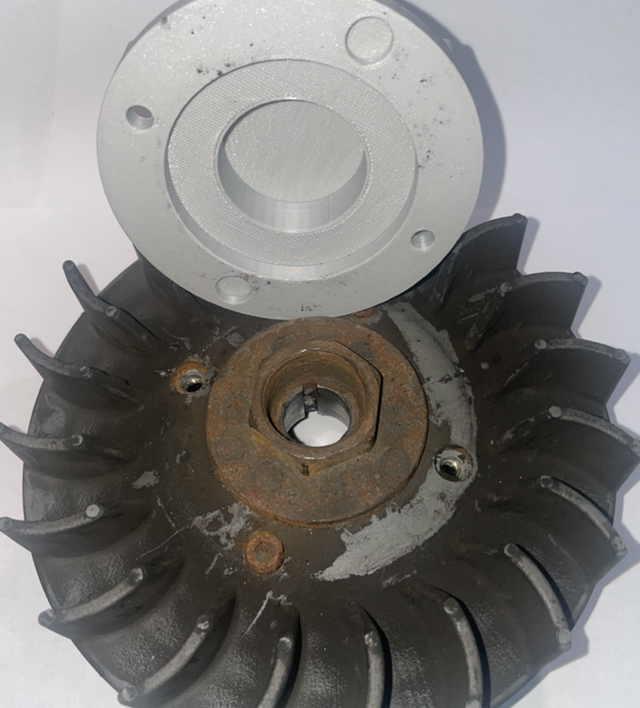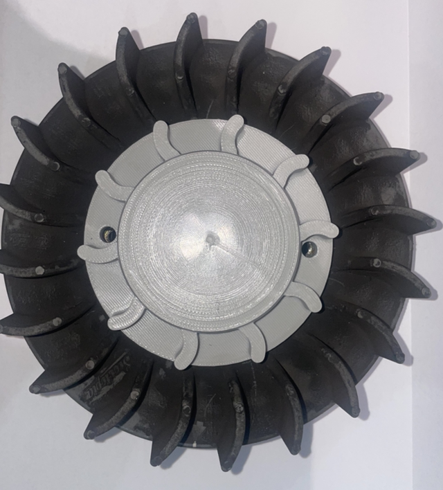 3d printed Lambretta flywheel fan to fit scootopia variotronic GP/DL model flywheel to hide the big nut and suck more air into the cowling to increase cooling capacity.